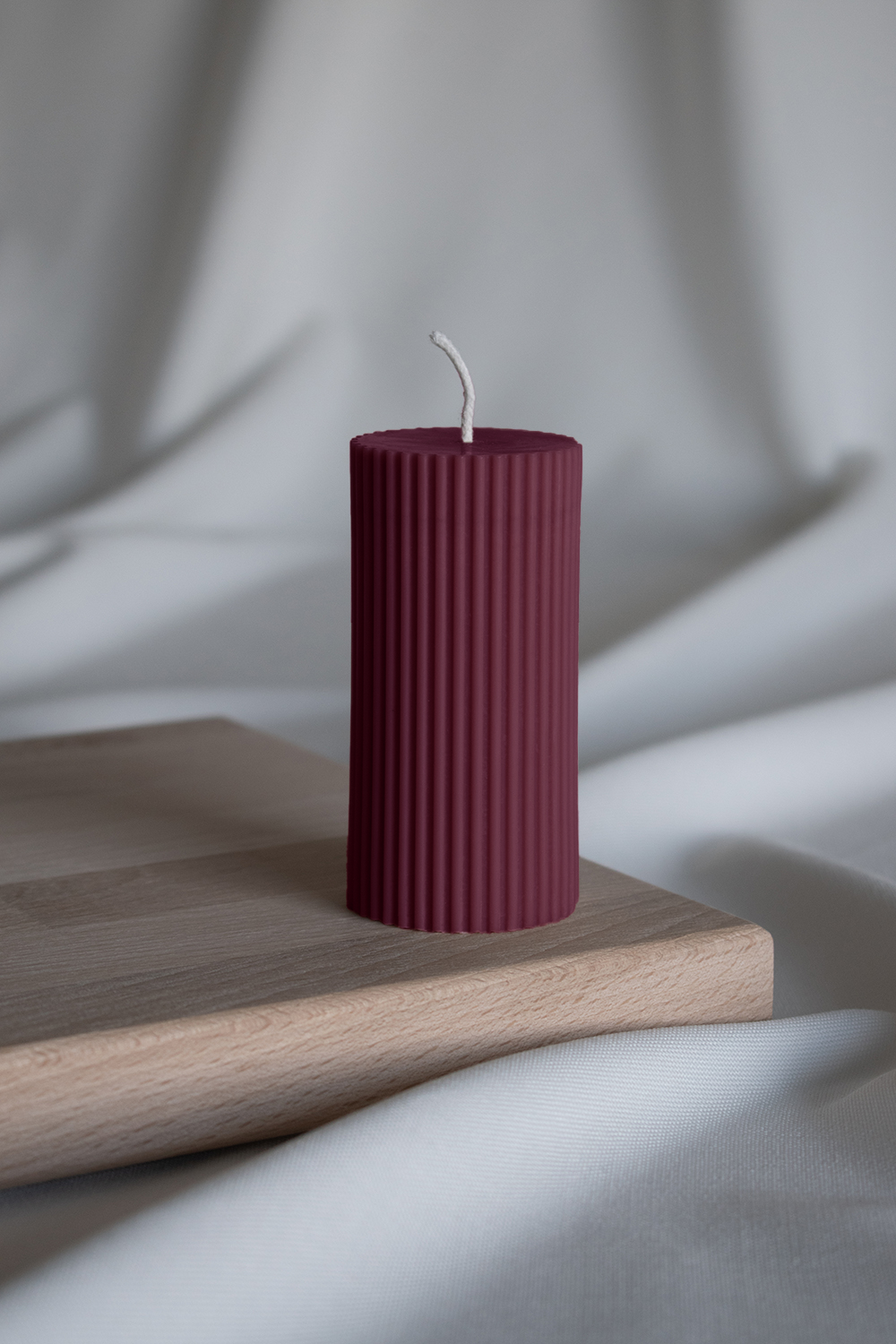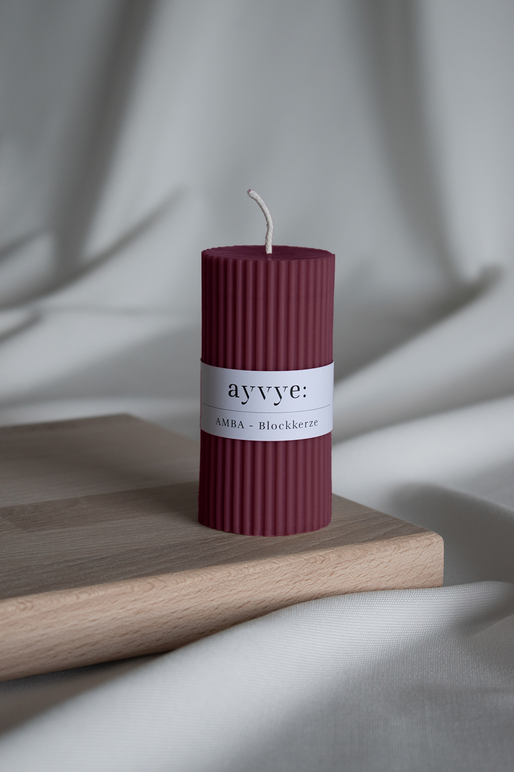 Entdecke AMBA, unsere geriffelte Blockkerze in Burgunder.