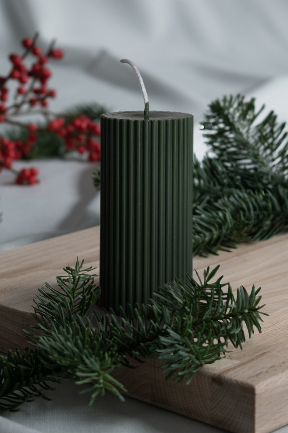 Entdecke AMBA, unsere geriffelte Blockkerze in Grün.