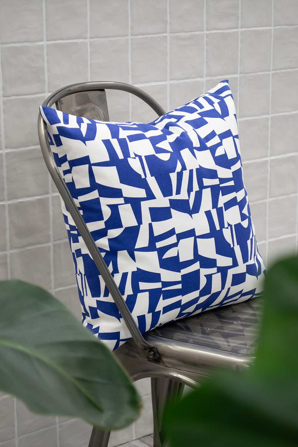 Das Kissen „Indigo“ begeistert mit einem kunstvollen, abstrakten Muster in tiefem Blau. Es verleiht dem Raum eine moderne, stilvolle Note und wirkt gleichzeitig verspielt. Ideal für alle, die ein besonderes Statement-Piece suchen.